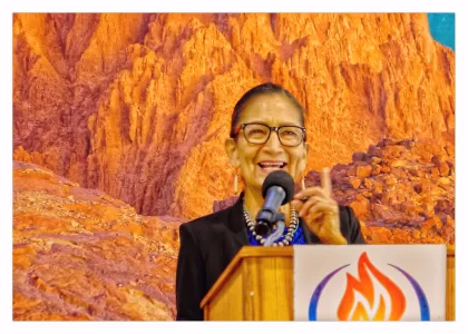 Deb Haaland, former secretary of the US Department of Interior, and a new Mexico native, spoke at UUWC on Sept 26. She talked about her life values.
