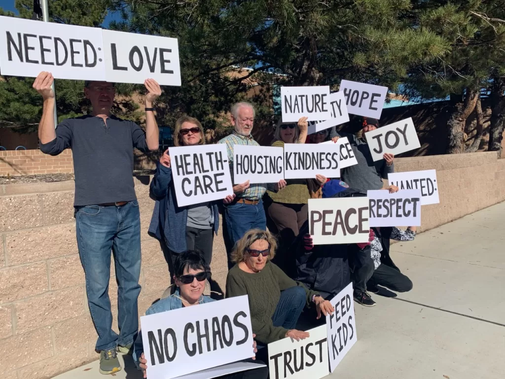 The UUWC members gathered in November 2025 to rally for positive societal values. The rally occurred on the corner of Southern Blvd. and Pinetree Ave. near the Rio Rancho Post Office.