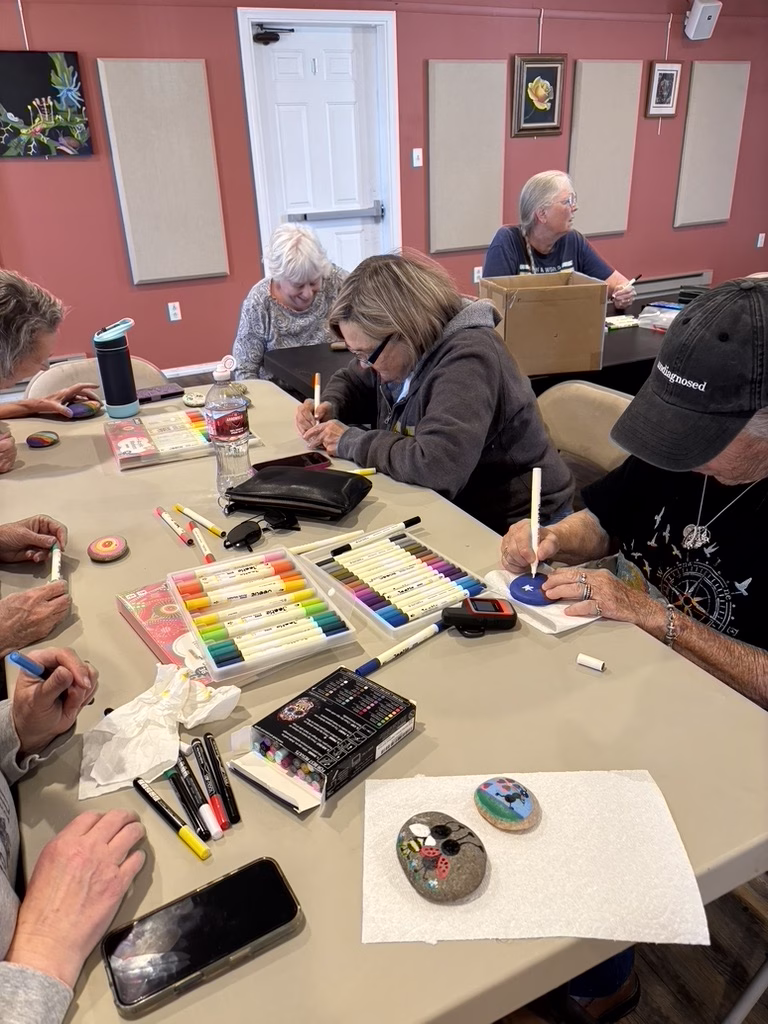 The UUWC Women’s Group at its April meeting spent time painting rocks with peace messages to be added to the Peace River/Peace Pole area at the church.