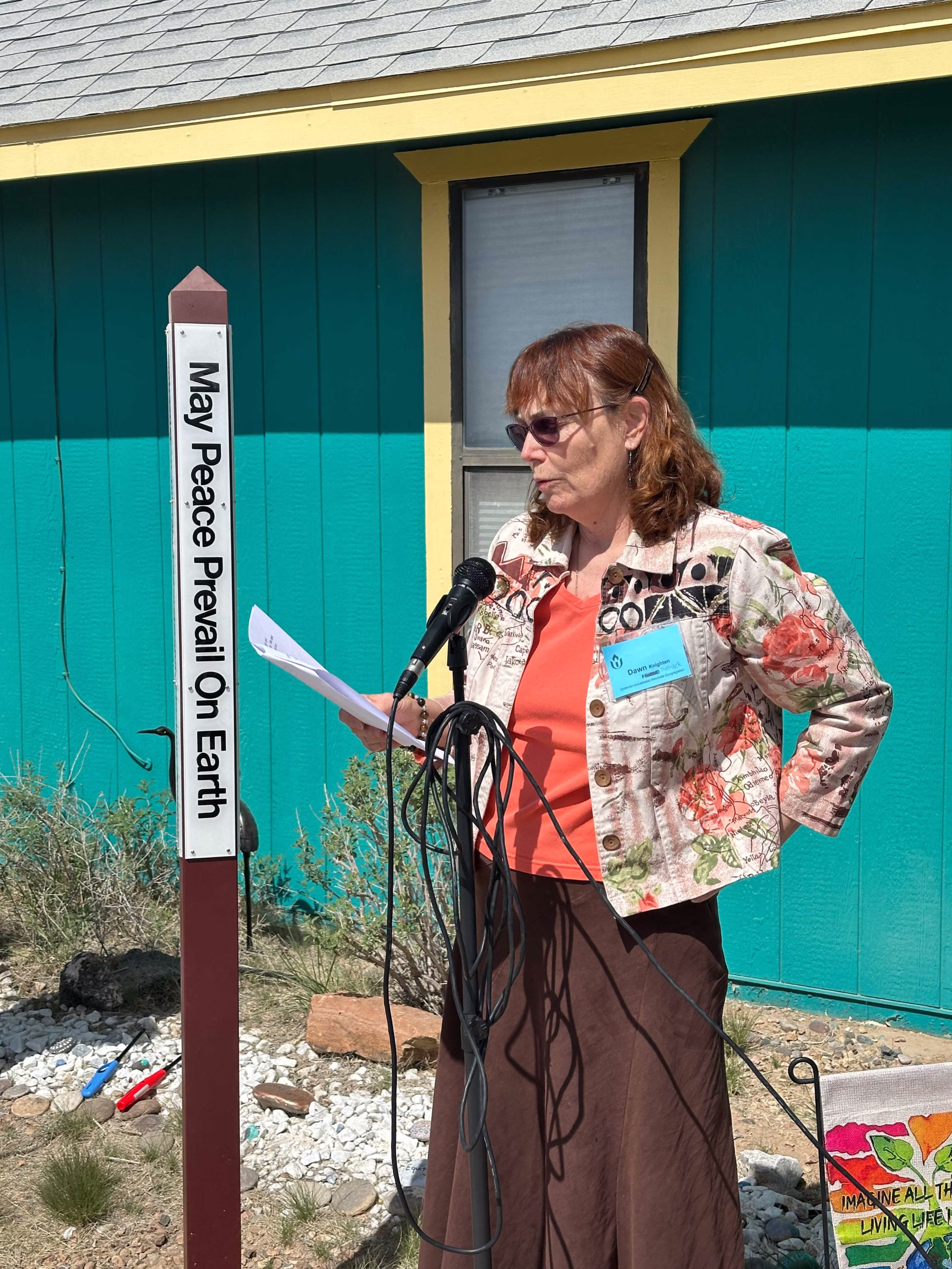 In the current climate of the war in Iran, No Kings protests, and economic uncertainty, I am uplifted by the Unitarian Universalist Westside Congregation’s installation and dedication of an international Peace Pole on March 29, at their location, 1650 Abrazo Drive NE, here in Rio Rancho. This is the only Peace Pole in Rio Rancho, as listed on the virtual global Peace Pole map (https://www.peacepoleproject.org/plantpeacepolemap/). It joins approximately 250,000 other Peace Poles in over 180 countries. Peace Poles are an internationally recognized symbol of the hopes and dreams of unity among people of all backgrounds and cultures. They serve as a silent prayer for peace, a way of bringing people together to inspire, awaken and uplift the human consciousness the world over.