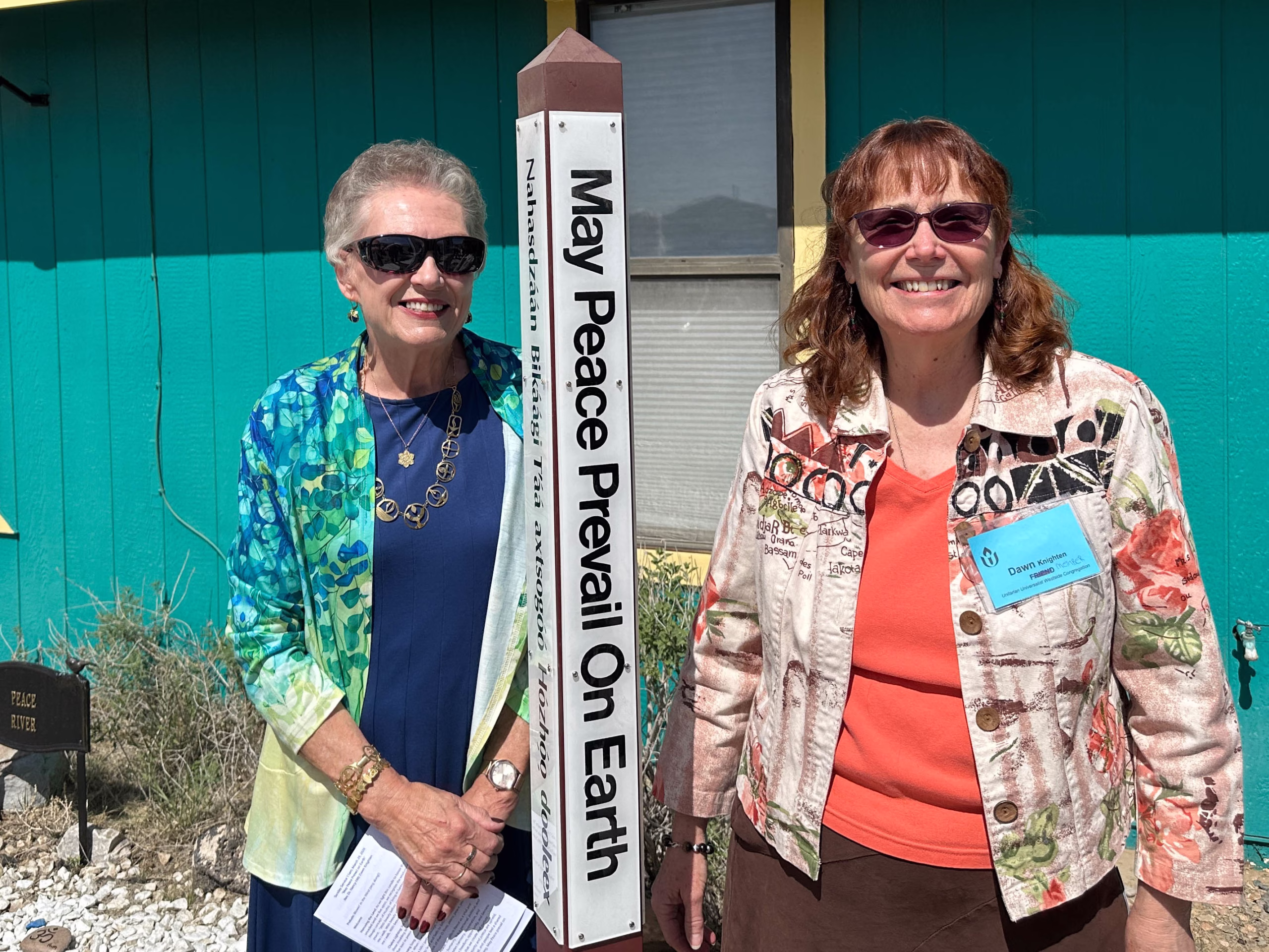 The Congregation added an International Peace Pole in a March 29, 2026, program promoting peace. The Peace Pole, installed near the Peace River, promotes peace in four languages: English, Spanish, Dine, and American Sign Language. The Community Care Committee oversees the Peace River and Peace Pole with Dawn Knighten maintaining a personal responsibility for the installations. Pictures of the installation shown below are of Dawn, the consulting minister Rev. Dr. Nancy Hitt, and members of the congregation.
