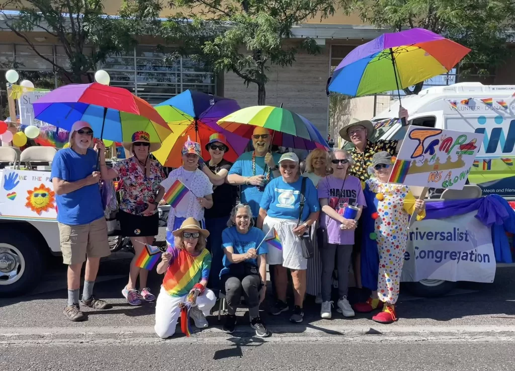 UU Westside on June 7, 2025, had a celebratory Pride weekend, with a parade entry, a booth, and a special Sunday service Here’s some photos of our members and friends participating in the Parade: More photos are available on the UU Westside Congregation Facebook page here.